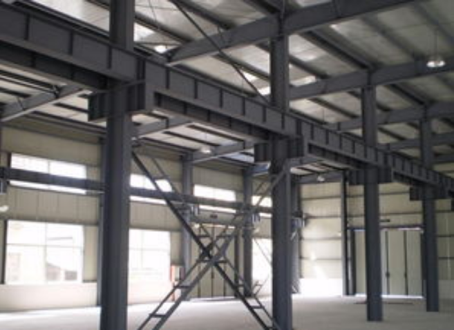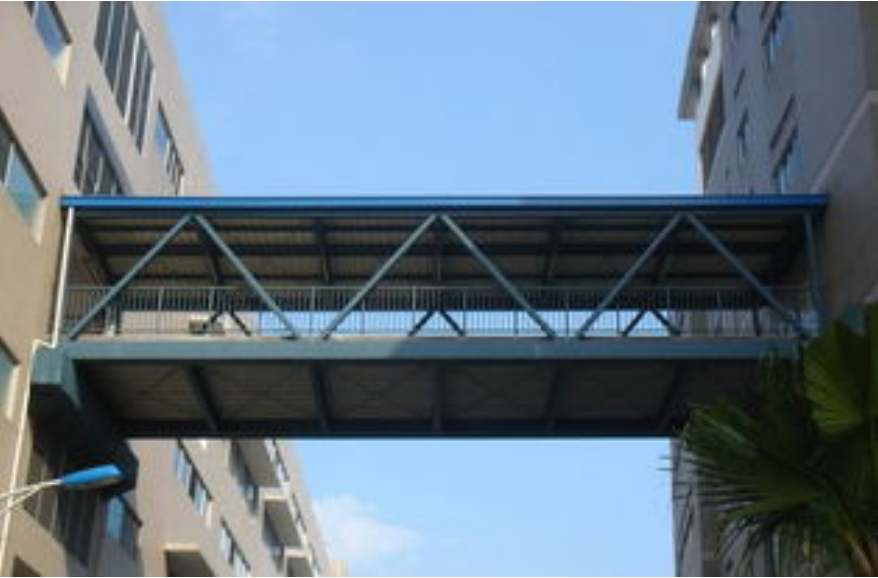 瀏陽繭業管廊鋼結構安裝工程,施工地點:湖南瀏陽。本工程為鋼結構組合安裝工程,管廊橫向為現澆鋼筋混凝土框架結構,縱向采用鋼梁,鋼梁與混凝架較接連接,沿管廊縱向設有柱間支撐。管廊縱向鋼梁主要為H型鋼,管現鋼混凝架結構上與縱向鋼梁連接處設有牛腿,牛腿頂面有預埋鋼板·滑動端處縱向鋼梁通過螺栓連接,其它地方設安裝螺栓,采用焊接連接。