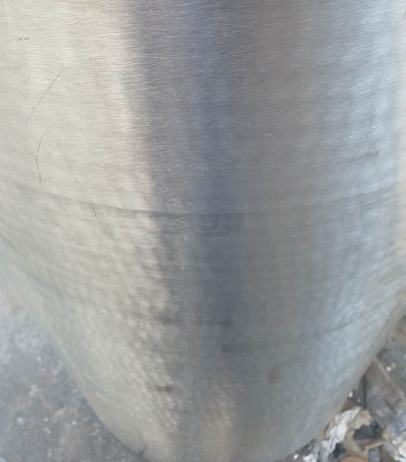 煙囪主管焊接好后對焊口用不銹鋼酸洗膏進行酸洗鈍化處理,由于不銹鋼酸洗膏的主要是硝酸、硫酸、磷酸、氫氟酸等多種酸的混合物作為腐蝕氧化層的主要成分,能夠去掉焊口焊渣的黑色物質,讓焊口光亮如新,且在焊口位置根據不銹鋼的抗腐蝕陛性能能發生鈍化反應,形成一層極薄的(約1nm)致密的保護膜保護焊口,使得焊口更美觀并提高耐腐蝕性能