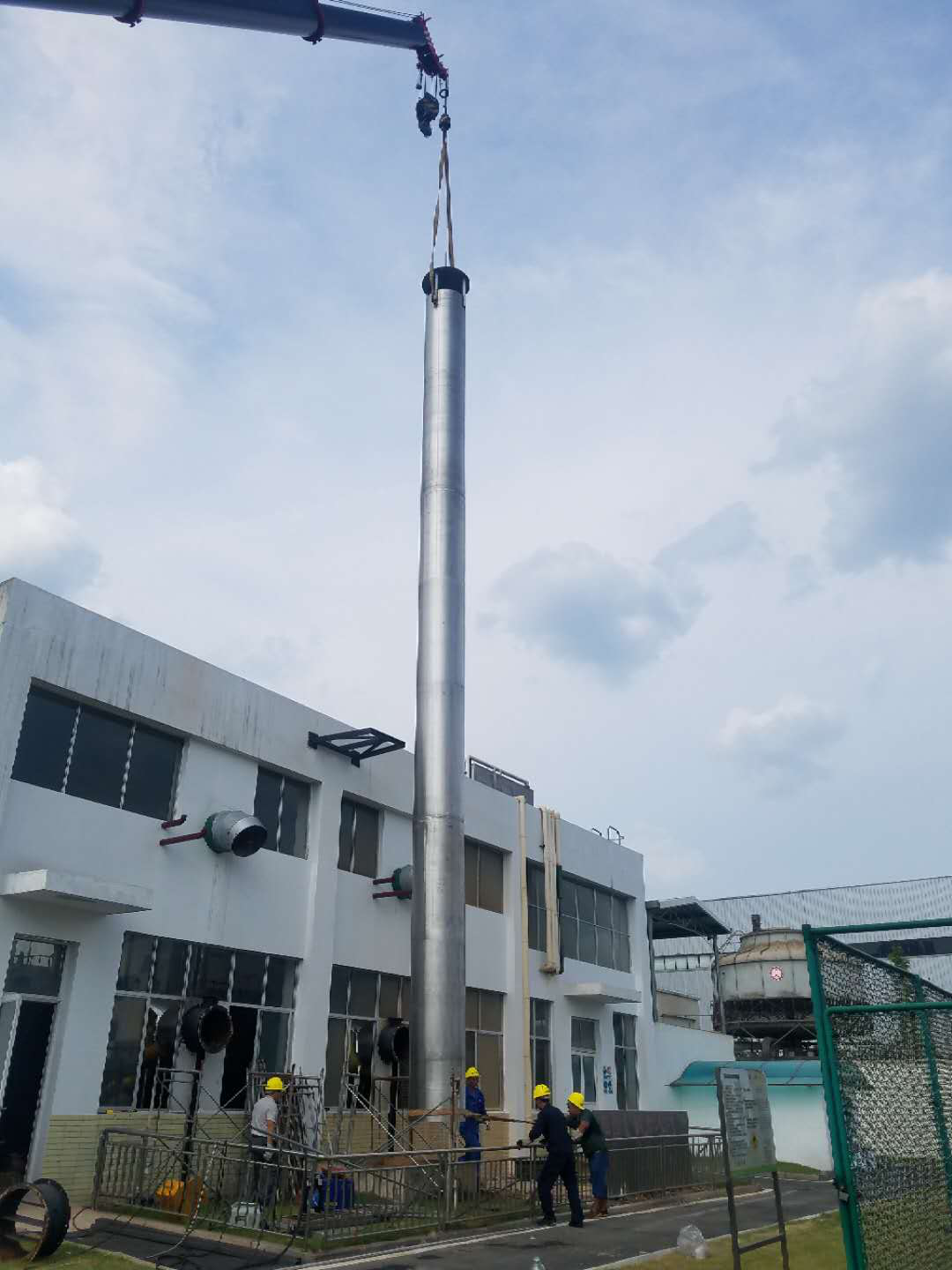 拆除完畢后,對原有基礎進行處理,處理好后對新不銹鋼主煙囪吊裝就位調直