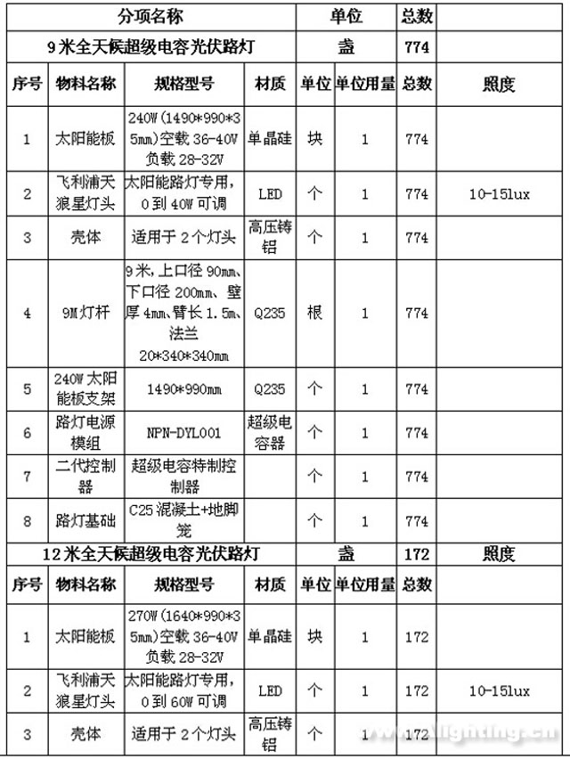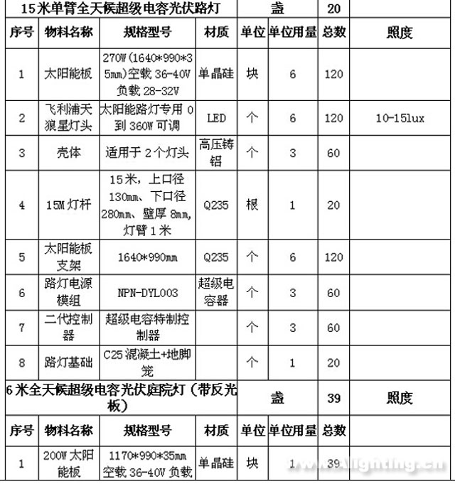 本項目路燈工程安裝皆為太陽能路燈,所裝太陽能路燈儲能裝置皆為超級電容器模組,該模組是在耐普恩公司自主研發的超級電容器極片技術的基礎上研發出來的,具有超常循環壽命、超寬工作溫度、綠色環保無污染等特點,并且能夠連續陰雨天正常充放電。