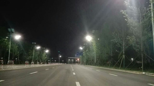 黃花綜合保稅區光伏路燈啟動時間為2017年1月,項目共計安裝1006盞全天候光伏路燈,其中:15米太陽能路燈20盞、12米太陽能路燈172盞、9米太陽能路燈774盞、6米太陽能庭院燈40盞。其中15米太陽能路燈安裝有防避雷裝置。