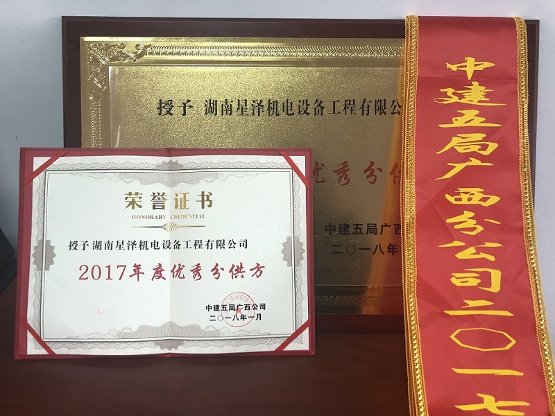 中建五局廣西分公司授予我司“優秀供應商”稱號