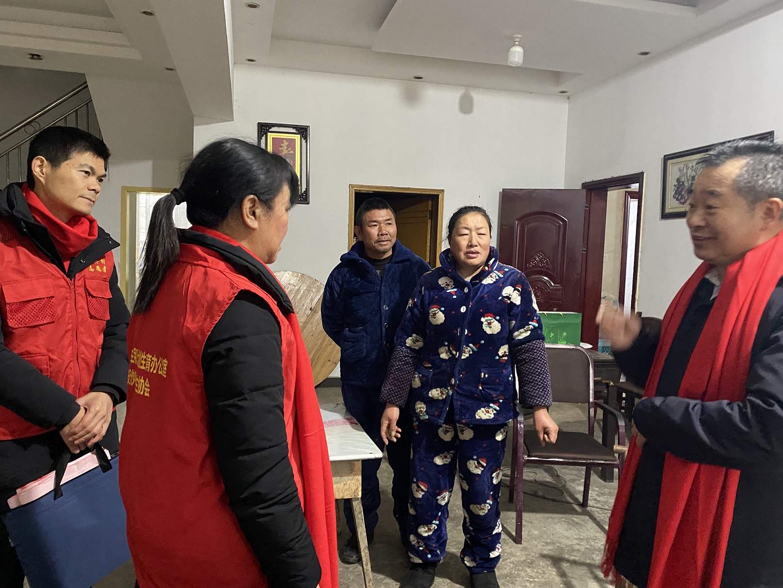 第三組志愿者來到金花坳組王建輝老人家中,老人的老公今年患重病去世,其無親屬子女,身患多種老年疾病,志愿者們奉上愛心紅包和禮包,祝愿老人家早日康復,家庭早日過上幸福生活;