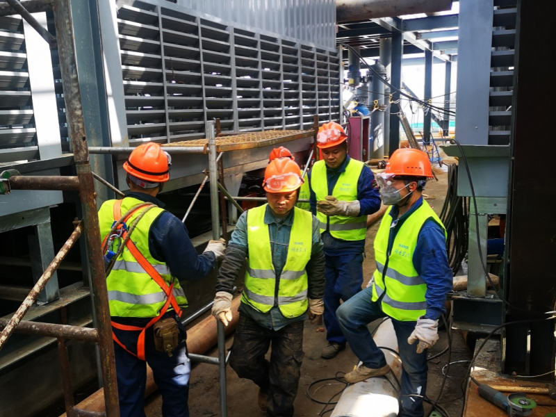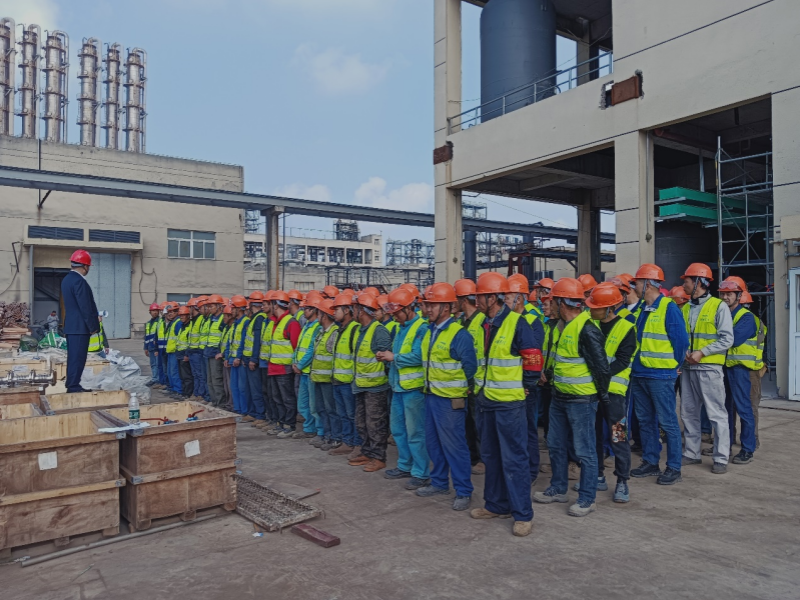 項目經理粟逵介紹鋼結構平臺、各種塔器罐體、各類工藝管道、電動閥門,電氣儀表自動控制工藝的紛繁復雜,工程量之巨大,現場安裝與生產同時進行的安全控制要求之嚴格,和一個煙頭罰款4000元的教訓,目前現場施工人員130人,因甲方設備供貨進度延后還沒有達到200多人施工高峰,無論條件變化,星澤這支隊伍個個都是行家俚手,經驗豐富的干將,對工藝管道設備安裝技術輕車熟路,來之能戰、戰之能勝,有能力完成客戶交付的任務。