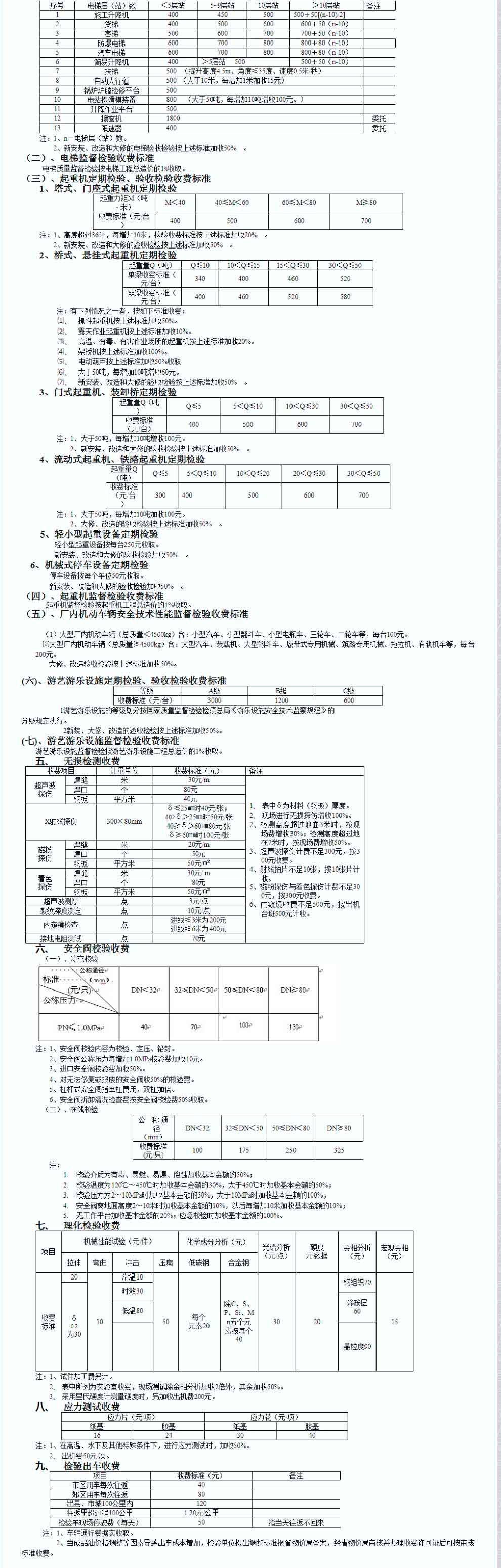 5、 其它檢測項目如測厚、理化、無損檢測、耐壓試驗、氣密試驗等,按本文件相應標準收取費用。