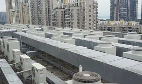 賽博電子廣場中央空調(diào)安裝工程建筑面積為106500平米,功能有一至五層為賣場,六層以上為寫字樓和商務居住,中央空調(diào)主機采用遠大BZB—250Ⅴ型直燃機組,空調(diào)末端采用清華同方吊頂式空調(diào)機組,循環(huán)水泵選用上海凱泉產(chǎn)品,水過濾器和電子除圬儀選用長沙多靈公司產(chǎn)品,風管采用江蘇德通復合風管材料,水管保溫采用華美橡塑材料,二臺500T康明冷卻塔安裝于28層頂,戶外管道施工有一定難度!在中央空調(diào)安裝室內(nèi)空調(diào)機組時公司采用前后配置消聲器消聲的辦法使設備噪聲降到理想壯態(tài)。