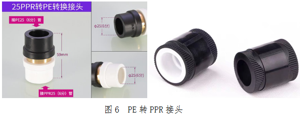 PE轉PPR接頭有如下圖所示兩種形式,一種中間為銅連接,一種是直接熔合。兩種均為工廠成品,從耐用性來講,第一種更勝一籌。一個小小的配件在特殊場合能幫助我們解決燃眉之急,有需要的朋友可以記住它哦!