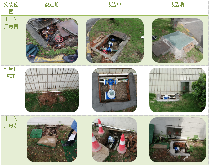 1例如23號廠房西南角的表井,打開井蓋全部是泥土,表都看不到,井的尺寸也不大,僅能容下一個人,機具無法在里面施工。施工人員硬是憑著雙手向下挖出1米多深,清出井里的磚塊和淤泥。成功更換了智能水表。